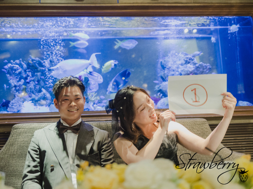 新郎チームと新婦チームに分かれて、ジェスチャーでお題を伝えるゲーム**言葉ではなくて動きだけで伝えないといけないので、想像以上に爆笑の連続!!「なにその動き…!!」と、思わず吹き出してしまう人も♡とくに普段はクールな人が全力で演じると、会場は大盛り上がりですよ♡