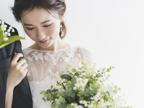 ウェディングドレスには、肩まわりの印象をやわらかくしてくれるデザインがたくさんあります。